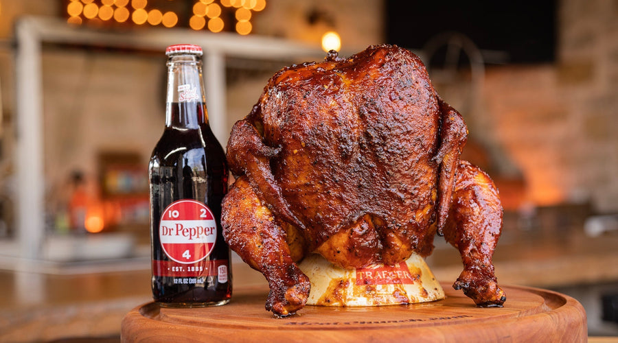 Can soda can chicken be better than beer can chicken? My friend Jonathan Fox from Fox Bros Bar-B-Q in Georgia tells me to "save the beer and make chicken with a Dr. Pepper instead. In this recipe we cook a chicken over Dr Pepper and then glaze with a delicious Dr Pepper BBQ Sauce at the end!