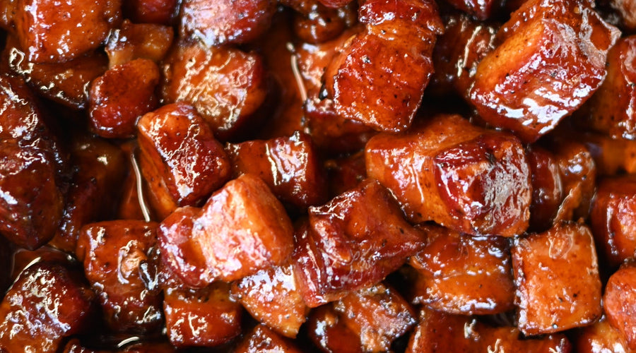 We have been known for our Pork Belly Burnt Ends since 2014. This is an updated 2022 recipe where we leverage some learnings from our buddy Travis Heim, owner of Heim Barbecue in Fort Worth, where he uses a pan to cook the pork belly confit style to make his famous Bacon Burnt Ends. We also mixed up some flavors from our other recipe on meatchurch.com as there are so many great pork options in the Meat Church arsenal of seasonings.