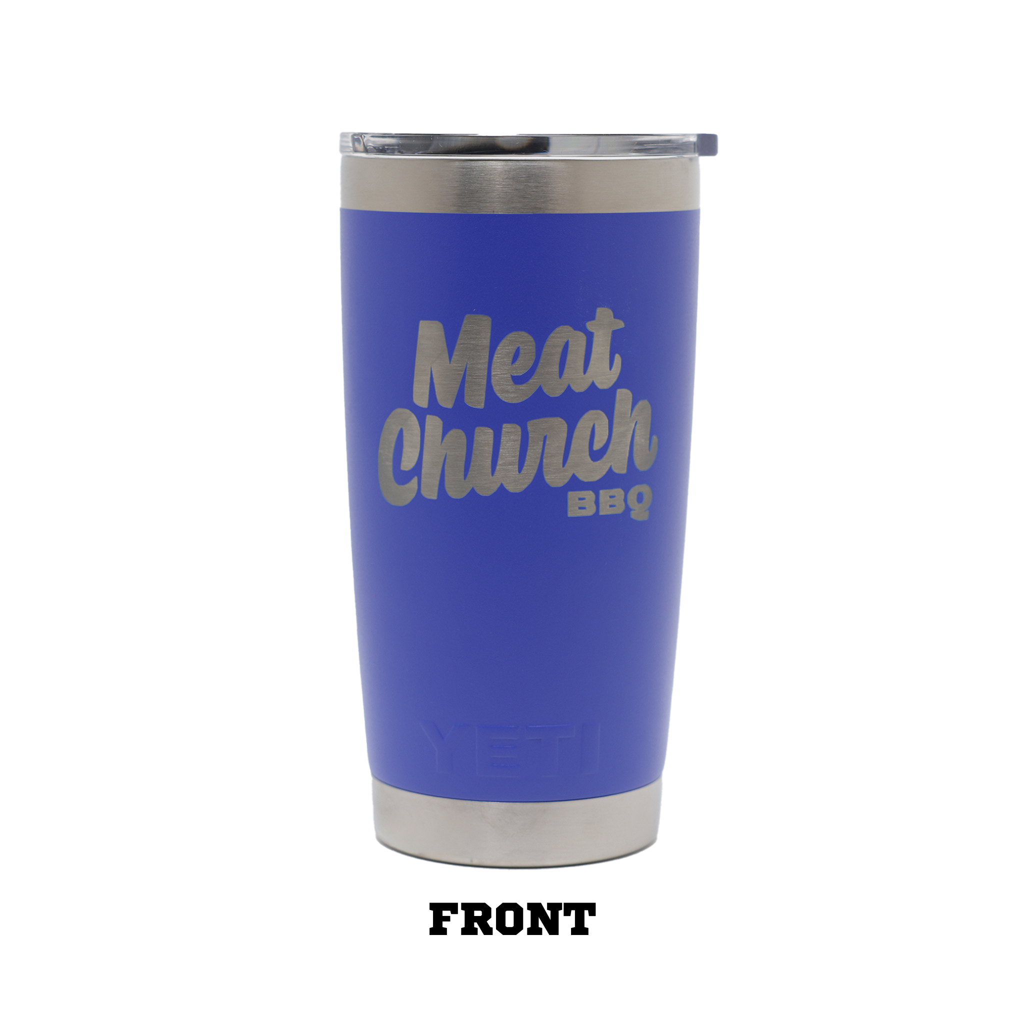 Our custom Meat Church Yeti Ramblers are the perfect cup for any pitmaster looking to keep their hot drinks hot, and cold drinks cold! This cup is double sided and includes the Meat Church, and highly popular Meato Bandito design!