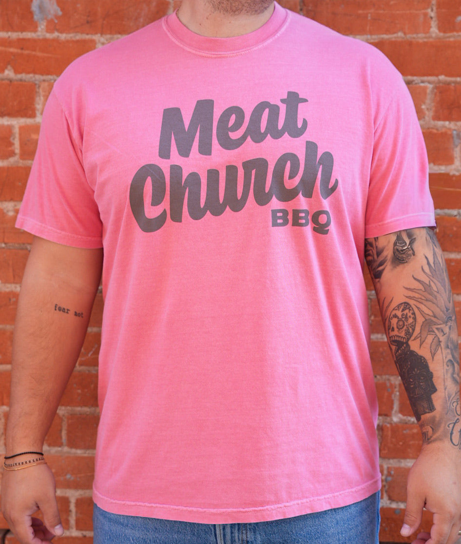 The Meat Church Smoke Ring t-shirt. Turn up the heat and the style with the Meat Church BBQ Smoke Ring Tee. Featuring a bold, retro-style Meat Church logo across the chest.