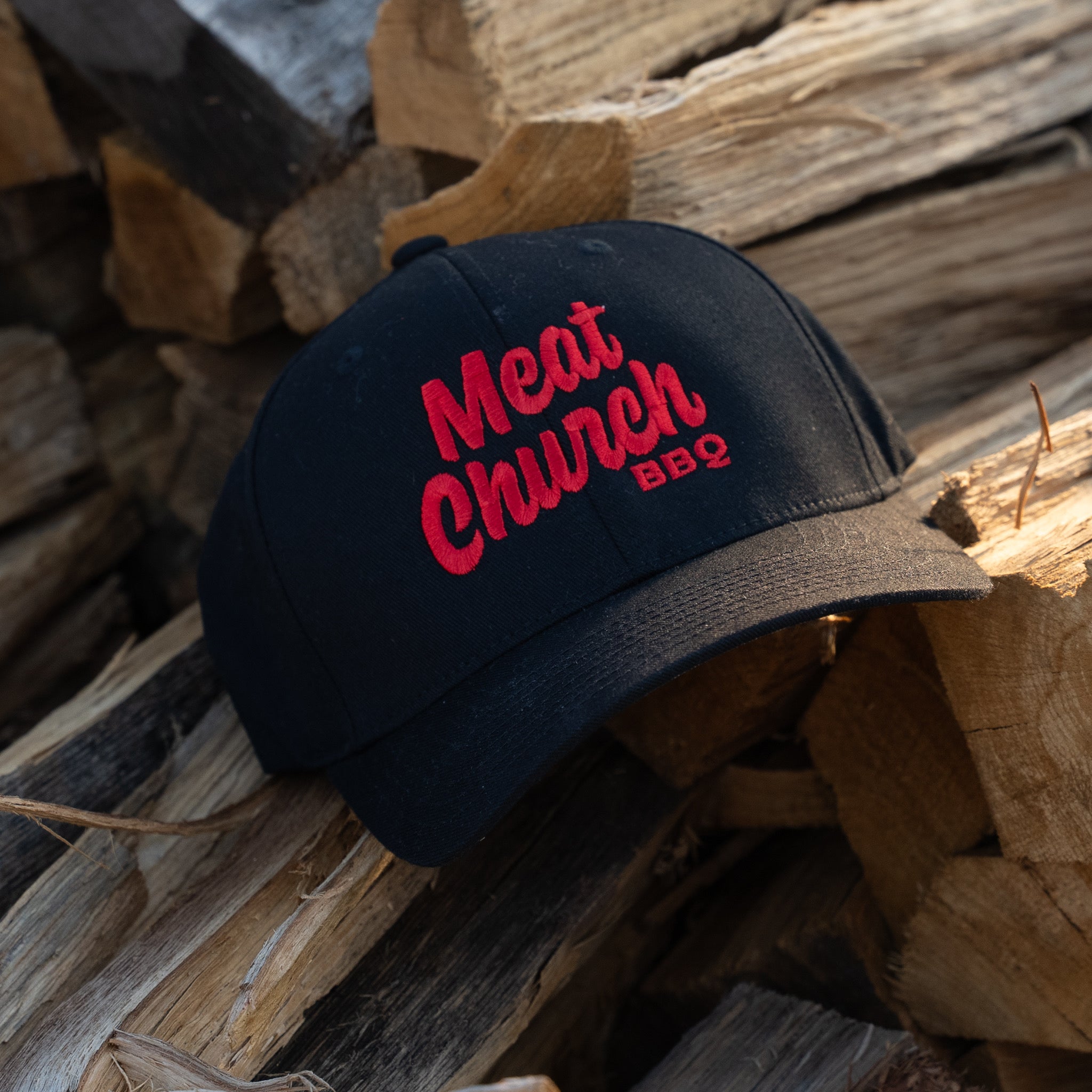 The MC Stacked Flexfit hat. Flexfit hats are back by popular demand from the Meat Church Congregation!